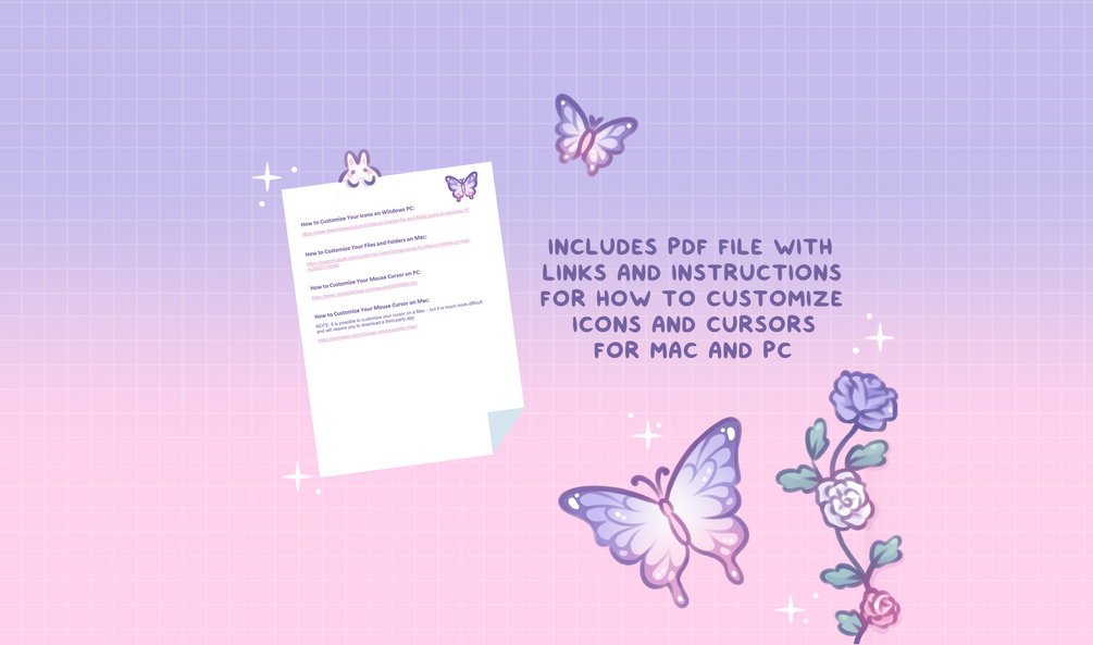 This set is compatible with both Mac and PC but a note for Mac users: it is more difficult to change the mouse cursor compared to PC - it is possible but you will need to download a third party app to customize your cursor. Instructions on how to do this are linked in the PDF. But besides that, everything else it easily compatible with both ✩